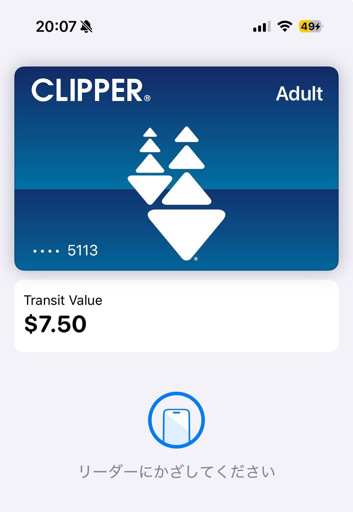 空港からはBART, Caltrain, バスを乗り継いで,サニーベールにあるホテルまで向かいました.サンフランシスコの公共交通機関はClipperと呼ばれるプリペイドの交通系ICで乗るのが基本です.日本で言うところのSuicaみたいなもんでしょうか.カードを入手しなくても,現代ならApple Walletでスマホに追加することが出来るので便利です.